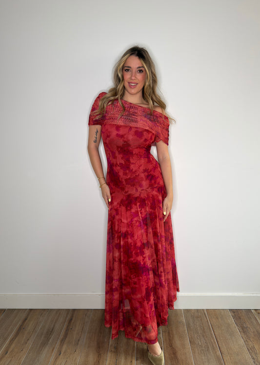 AgotadoVestido Tul Estampado Rojo