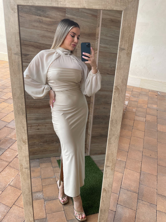 -35%Vestido Gasa Beige