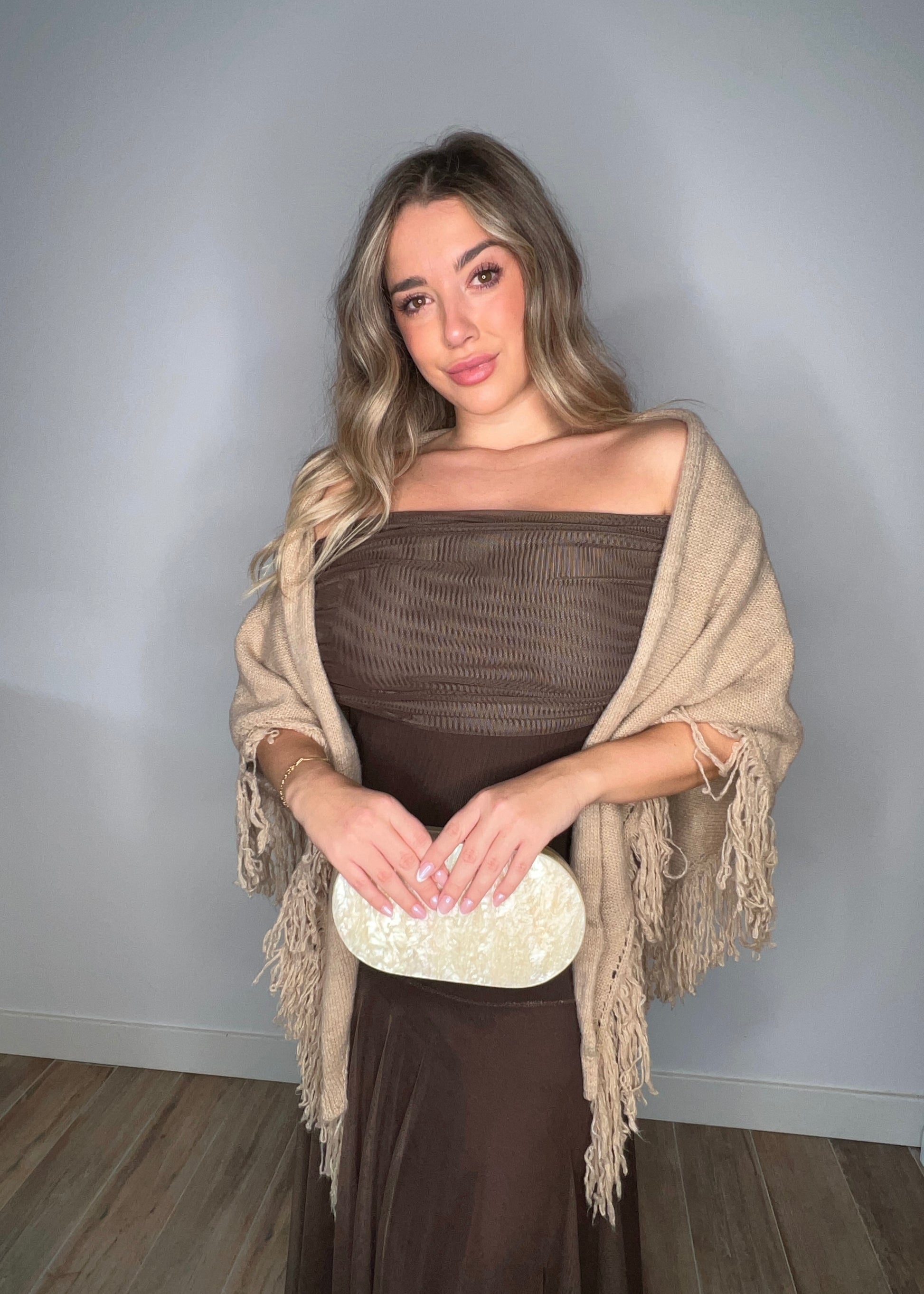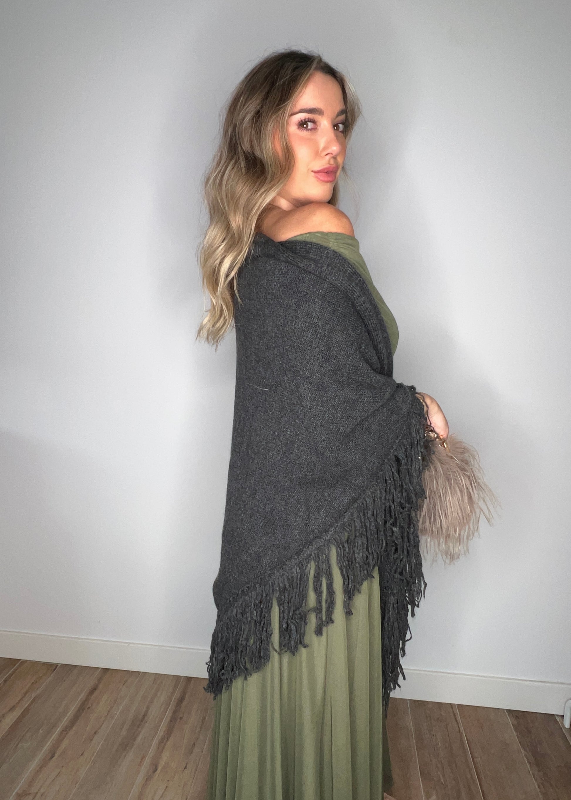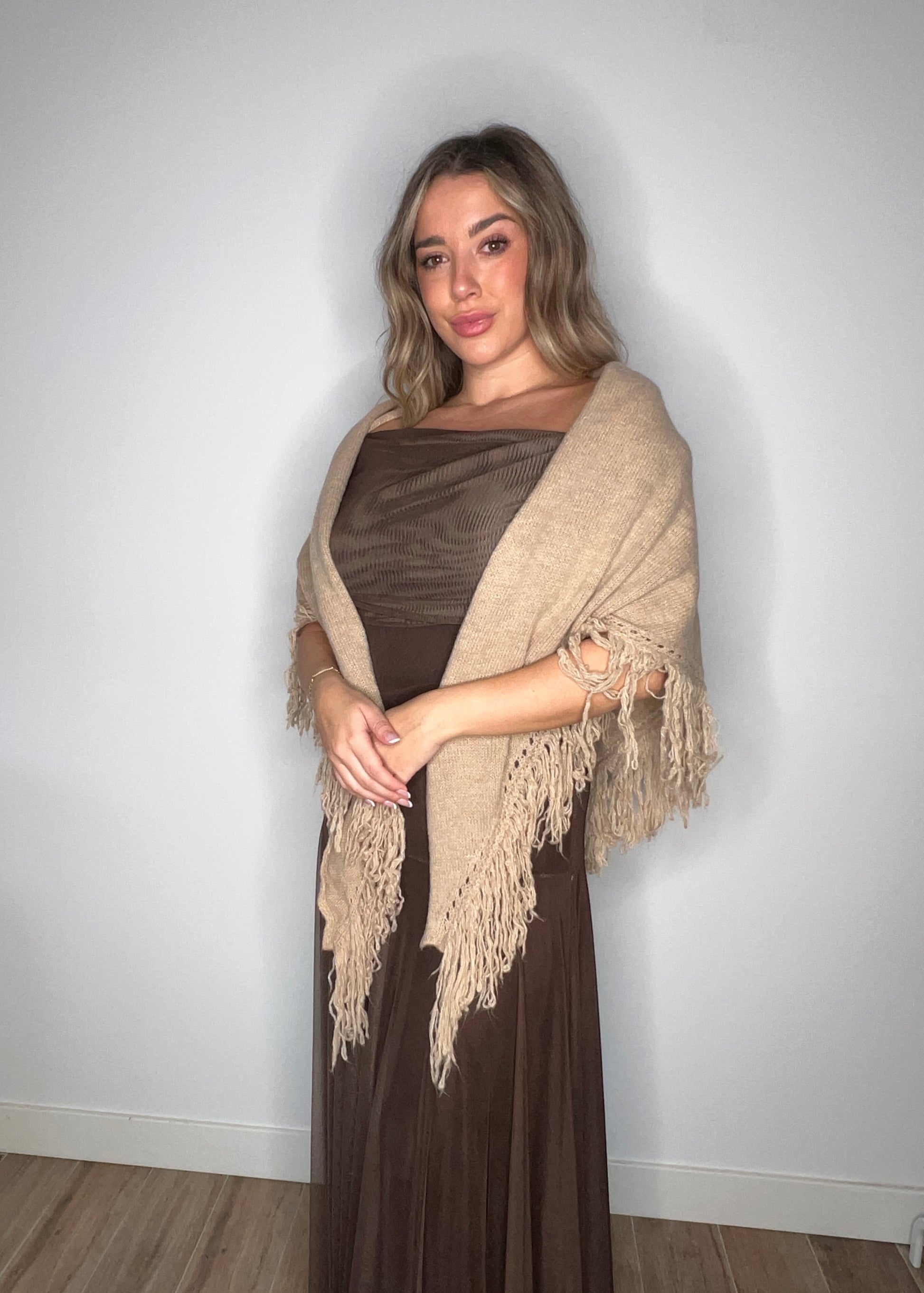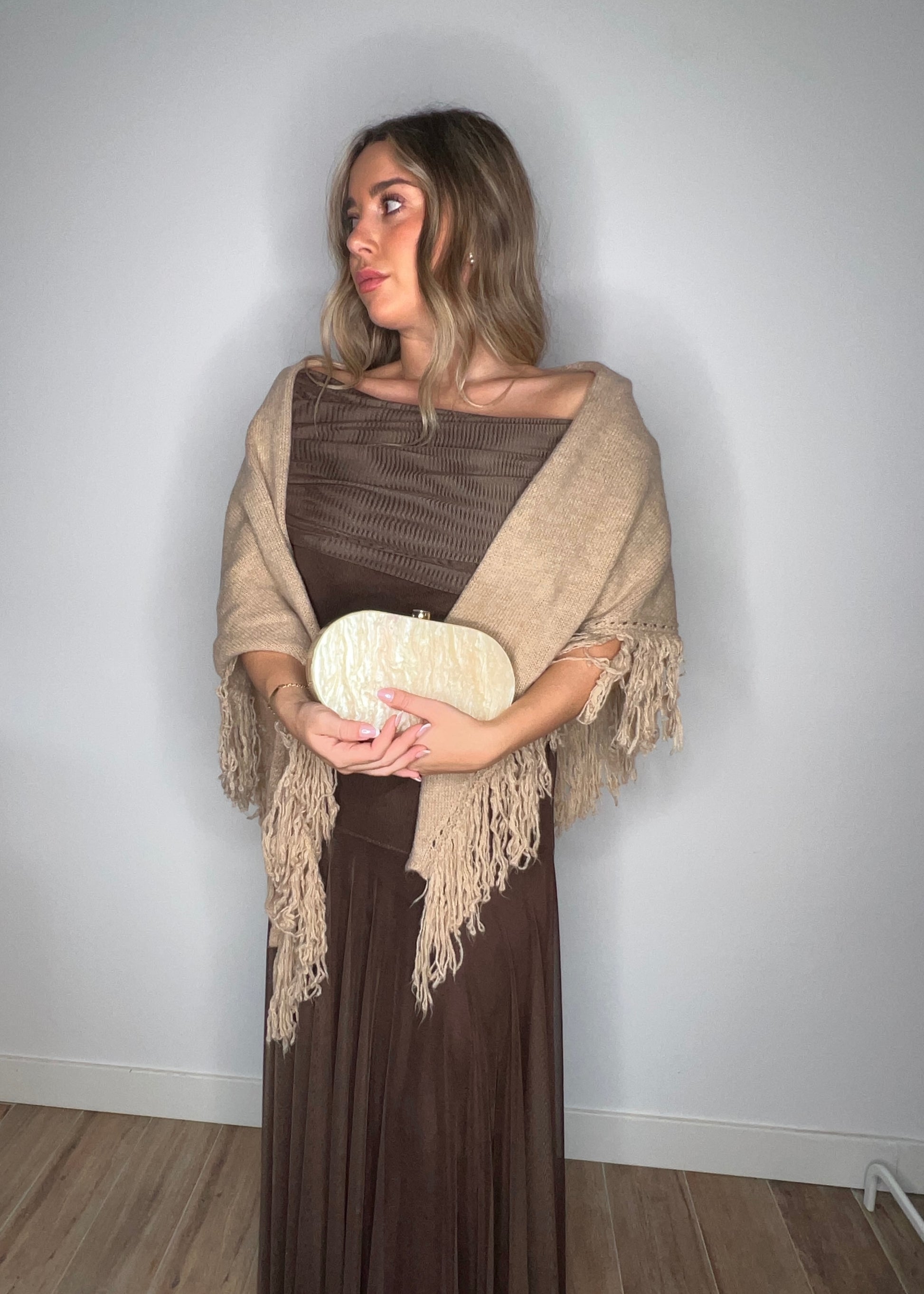 Nuestra Capa Lana es el complemento perfecto para meses fríos. Confeccionada con lana para aportar calidez y suavidad, ideal para bodas de invierno o cenas de empresa. Disponible en varios colores versátiles, es elegante y cómoda. Perfecta también para el día a día, combínala con vaqueros para un look casual y con estilo. Diseño ligero con flecos para eventos y planes cotidianos.