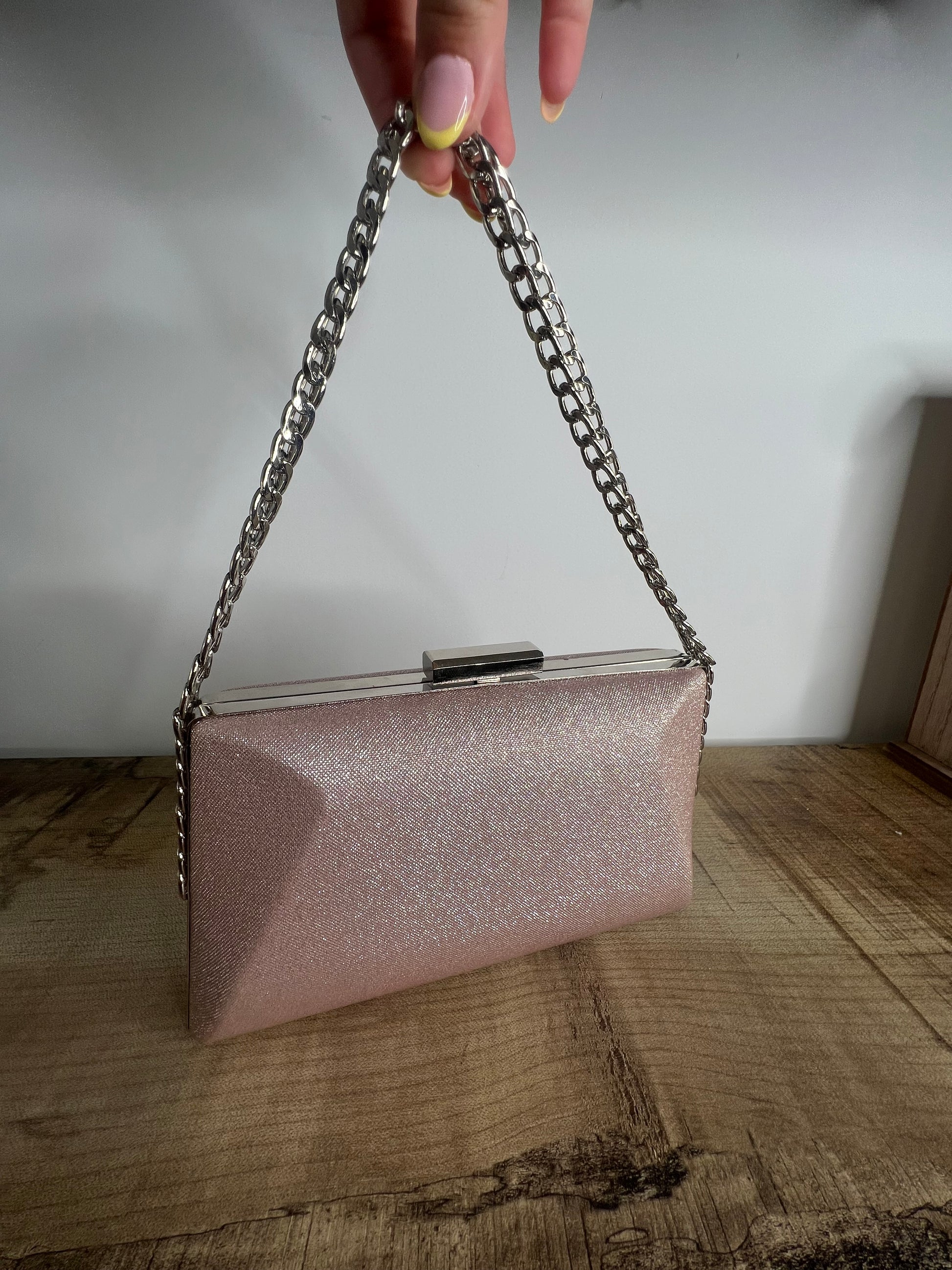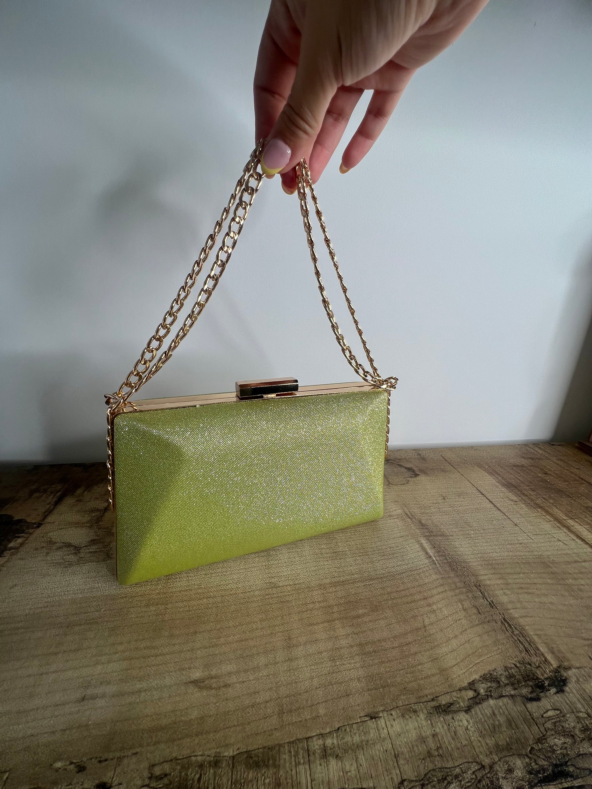 Eleva tu look con nuestros clutch de acabado glitter, diseñados para brillar en cada ocasión especial. Disponibles en dos tonos irresistibles, verde lima con cadena dorada y rosa empolvado con cadena plateada, estos bolsos combinan elegancia y funcionalidad.