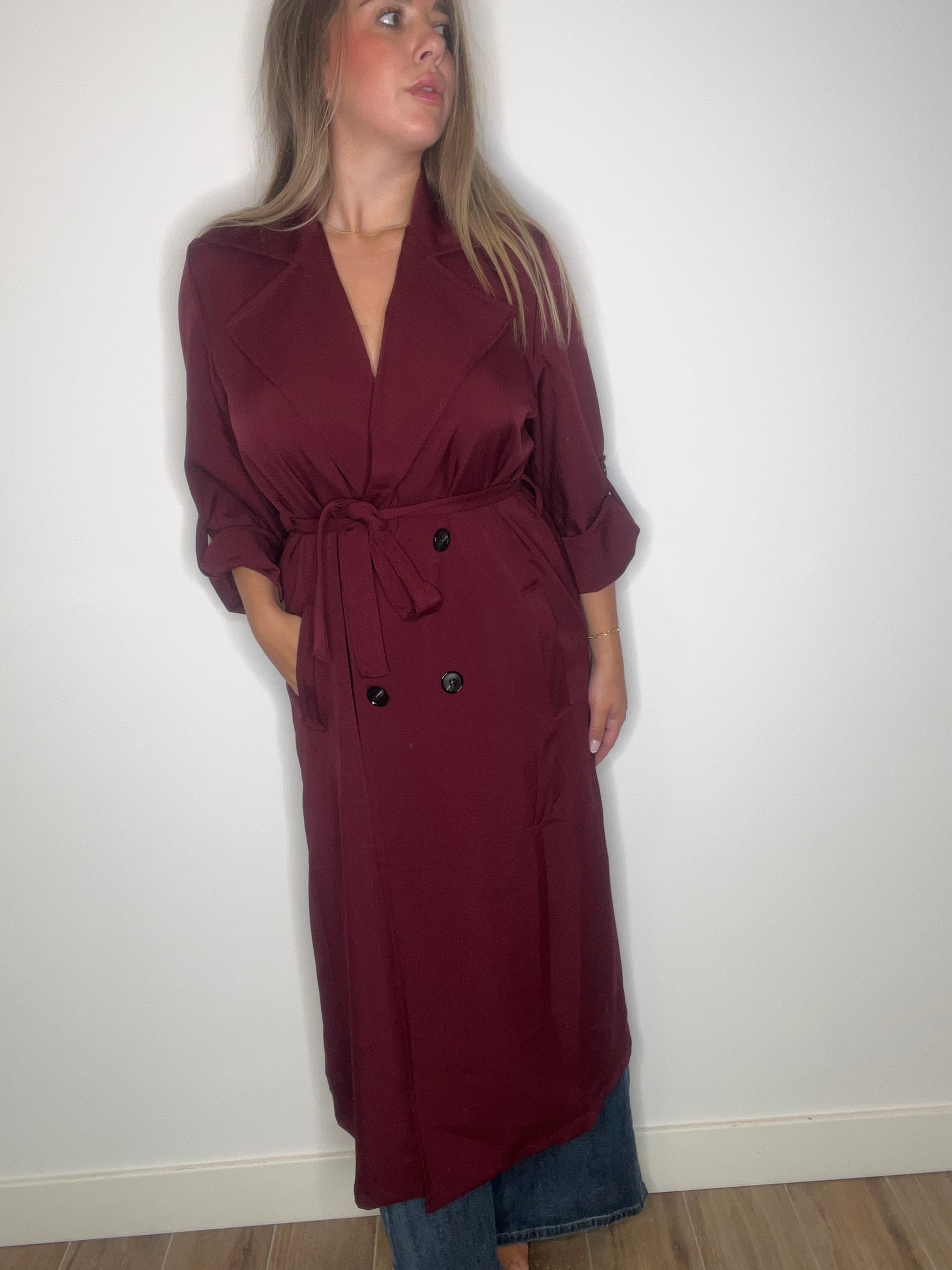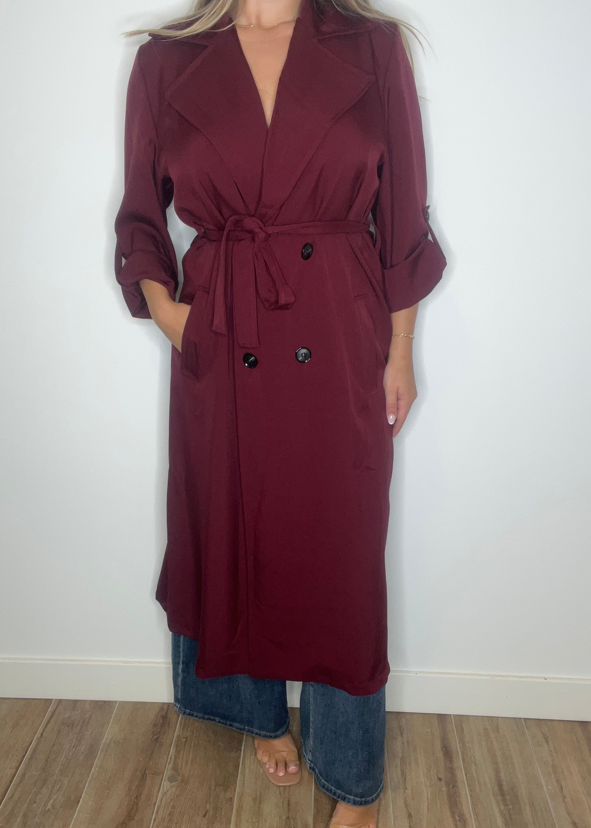 La gabardina es una elegante chaqueta larga en color burdeos, disponible en talla única desde la S hasta la XL. Confeccionada en gabardina, es resistente y duradera, perfecta para cualquier ocasión. ¡Añade un toque de estilo a tu guardarropa con esta versátil prenda!