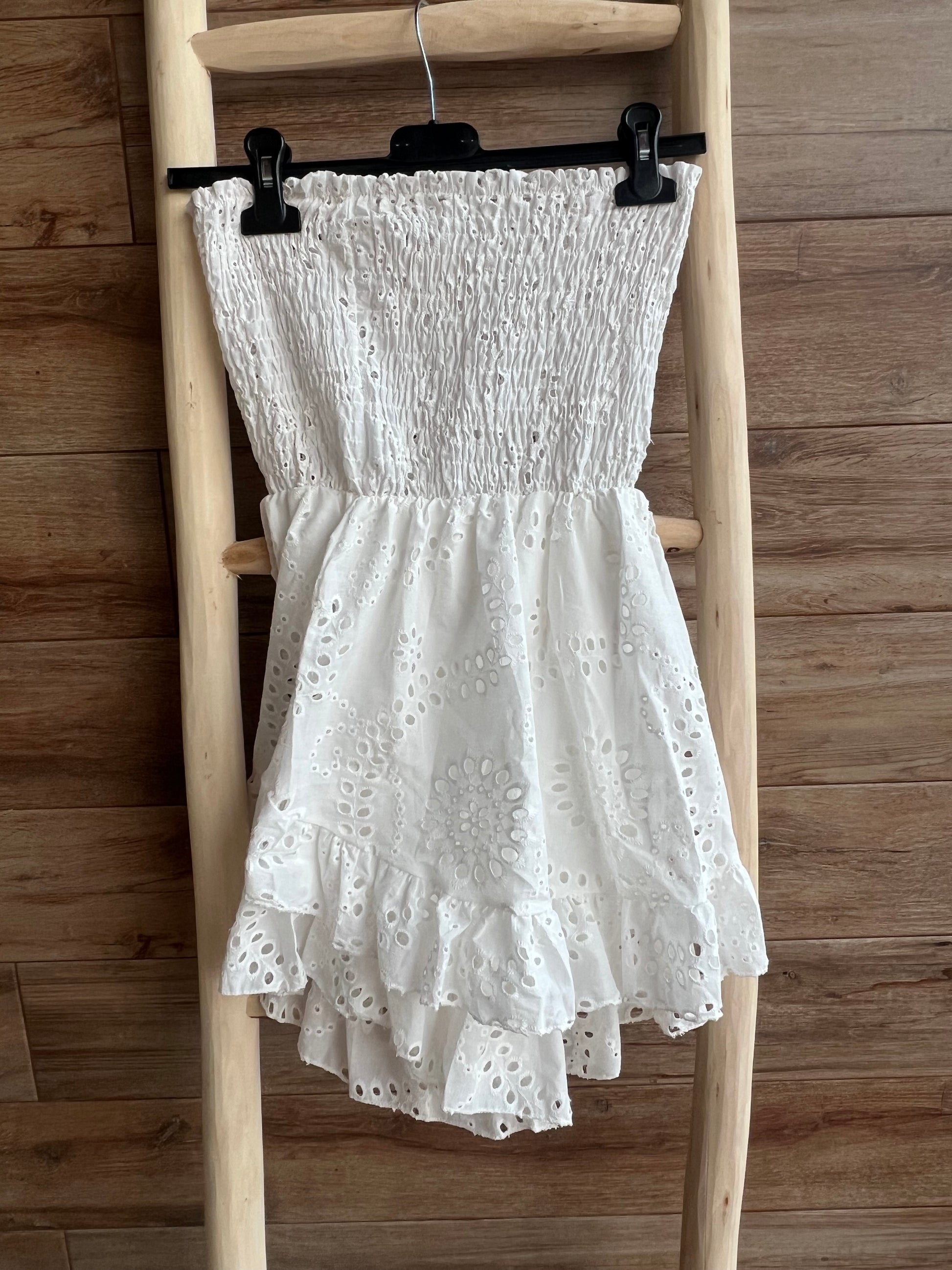 El Vestido Aura es la fusión perfecta entre estilo y comodidad. Confeccionado en un tejido calado ligero de poliéster, destaca por su escote palabra de honor y cuerpo elástico de nido de abeja que se ajusta al pecho sin oprimir.
